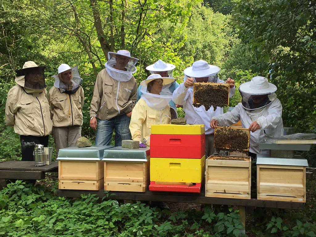 Gemeinsam mit den anderen „Neuen“ durchlaufen Sie das Bienenjahr. So erlernen sie eine einfache Betriebsweise, die ihnen ermöglicht ihr erstes Bienenvolk sicher über den Winter zu bekommen. Horsts Devise – nur selber tun macht schlau. Deshalb werden die Bienengarten-Völker unter Anleitung direkt von Anfang an von unseren Neuimkern betreut.